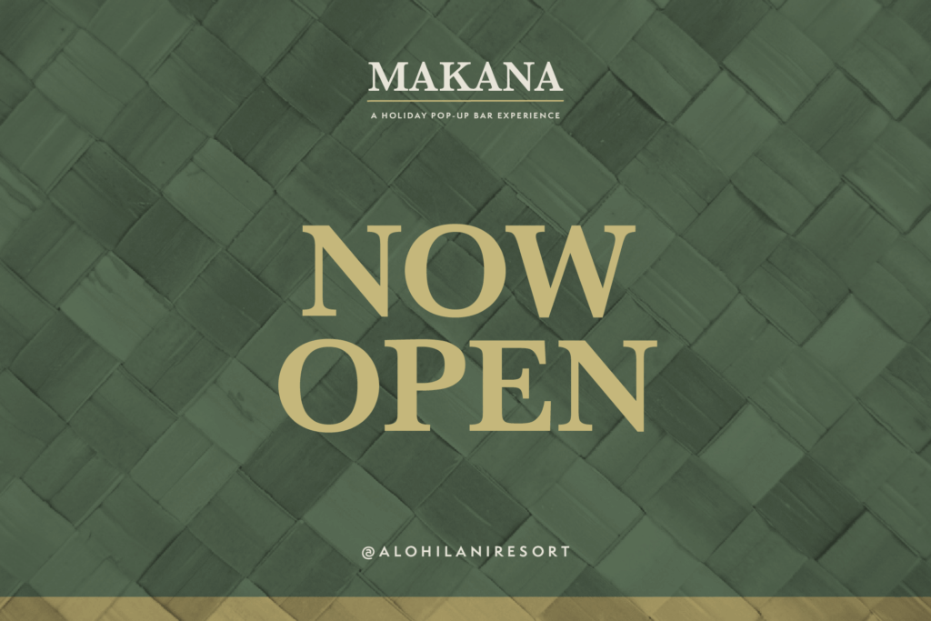 Our MAKANA Holiday Bar transforms the ‘Alohilani Resort Oceanarium Lounge into an immersive experience, enveloped in warm, festive island décor featuring The Mālama ʻĀina Storytelling Tree with holiday themed cocktails available for purchase. MAKANA is a new cozy, gathering oasis perfect for friends and family to celebrate the holidays while also supporting charity partner, Sustainable Coastlines Hawaii.