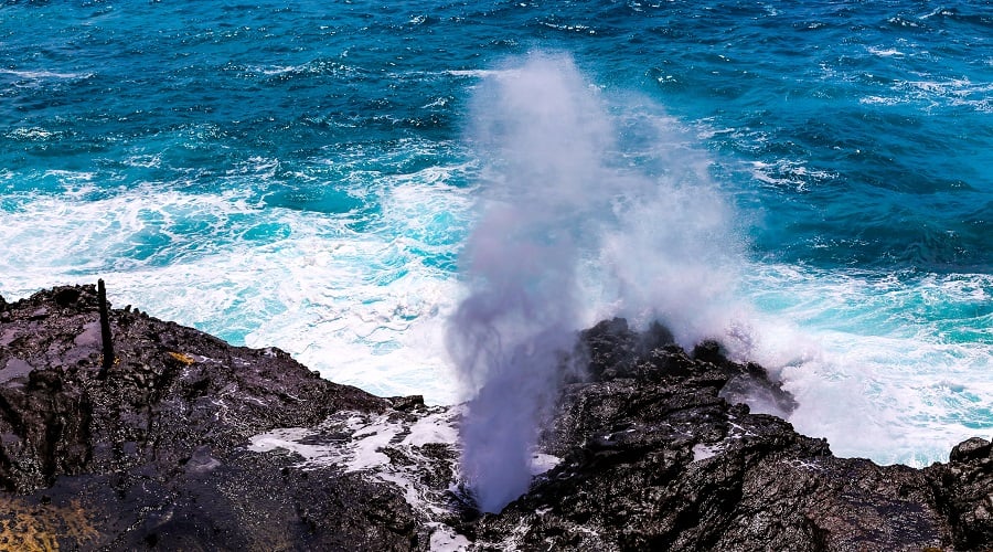 Head over to Oahu’s East Side to check out Halona Blowhole. Catch amazing views from Halona Point above—the blowhole itself is fenced to keep visitors and locals alike from getting too close to the powerful blowhole—and look out on some of the most treacherous currents in the world as they crash against the island cliffs and boulders, spraying and pulling through the picturesque volcanic tubes. Visiting is safe if you follow posted guidelines, so take the warning signs you’ll see seriously. The area’s current is called Kaiwi, or locally “Molokai Express.” Legend has it those who get pulled away in the current will land on Molokai island, 25 miles east of Oahu across the Kaiwi Channel.