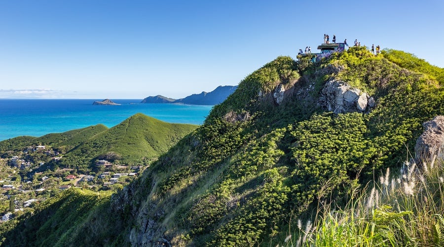 A challenging but athletic family-friendly out-and-back trail running along Kaiwa Ridge. At just under two miles round trip, this straightforward hike starts out with a brisk climb, then evens out as some of our favorite views of the surrounding mountains, as well as Kailua Bay, Lanikai and the Mokulau Islands.