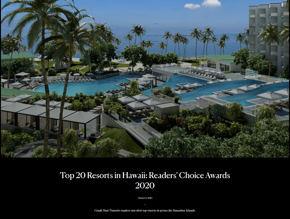 ‘Alohilani Resort Waikiki Beach ranked number three in the Top 20 Resorts in Hawaii: Readers’ Choice Awards 2020.