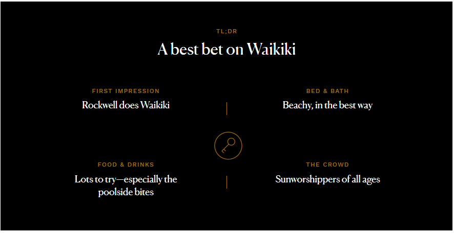 Given the hotel’s top-notch Rockwell renovation, its location smack-dab on Waikiki Beach, and its delicious F&B offerings, it’s fair to say that the ‘Alohilani is almost a steal compared to some of the area’s pricier—and dustier—resorts.