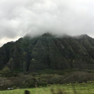 Leaving our Hawaii resort and climbing north into the mountains above Honolulu to the North Shore, coming out the other side of the tunnel and one immediately felt the dynamic barometric drop of the windward coast and timeless canyons and ridges vibrant with thick foliage. Past the picture postcard views, the food carts and their famous shrimp preparations, we wound and unwound along Kamehameha Highway toward Gunstock Ranch, sloping up gently toward the high country and dense forests.